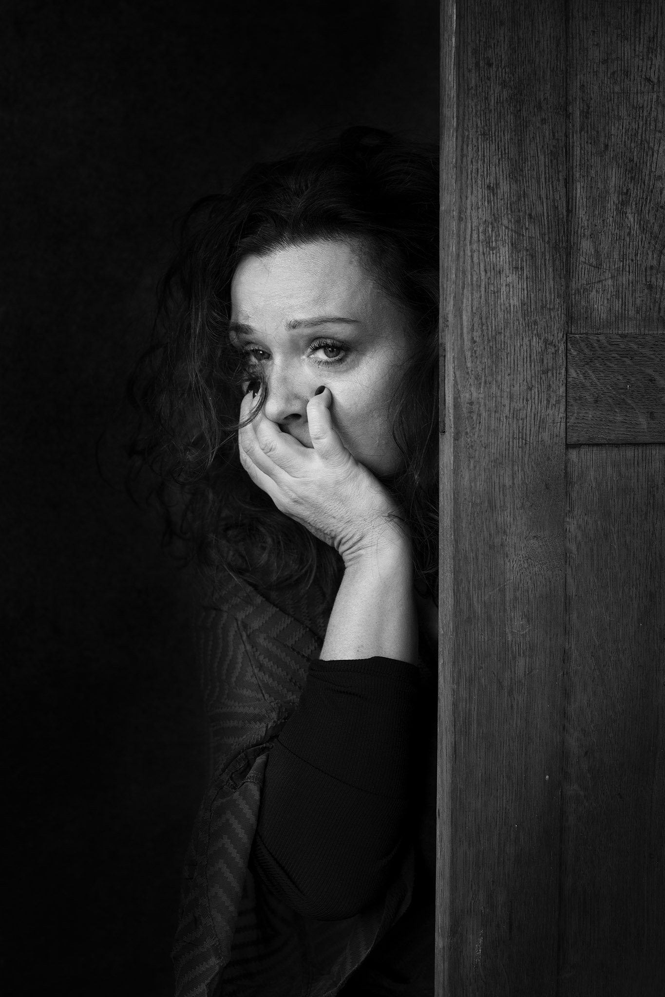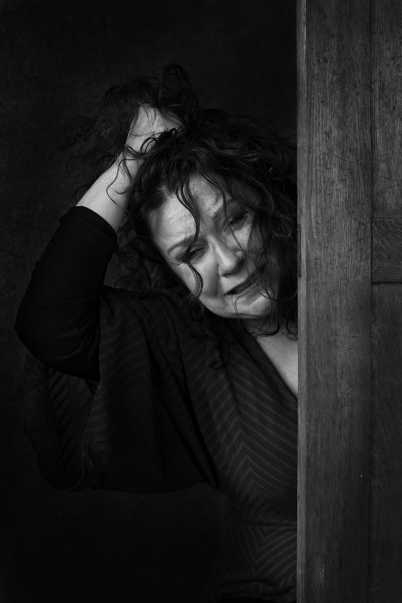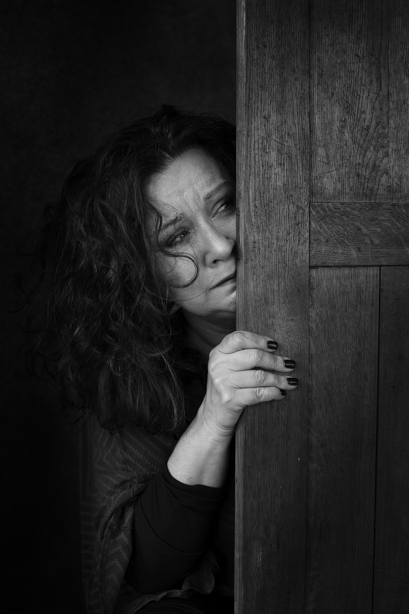 Za drzwiami – na szczęście tylko pozuje – aktorka Beata Schimscheiner