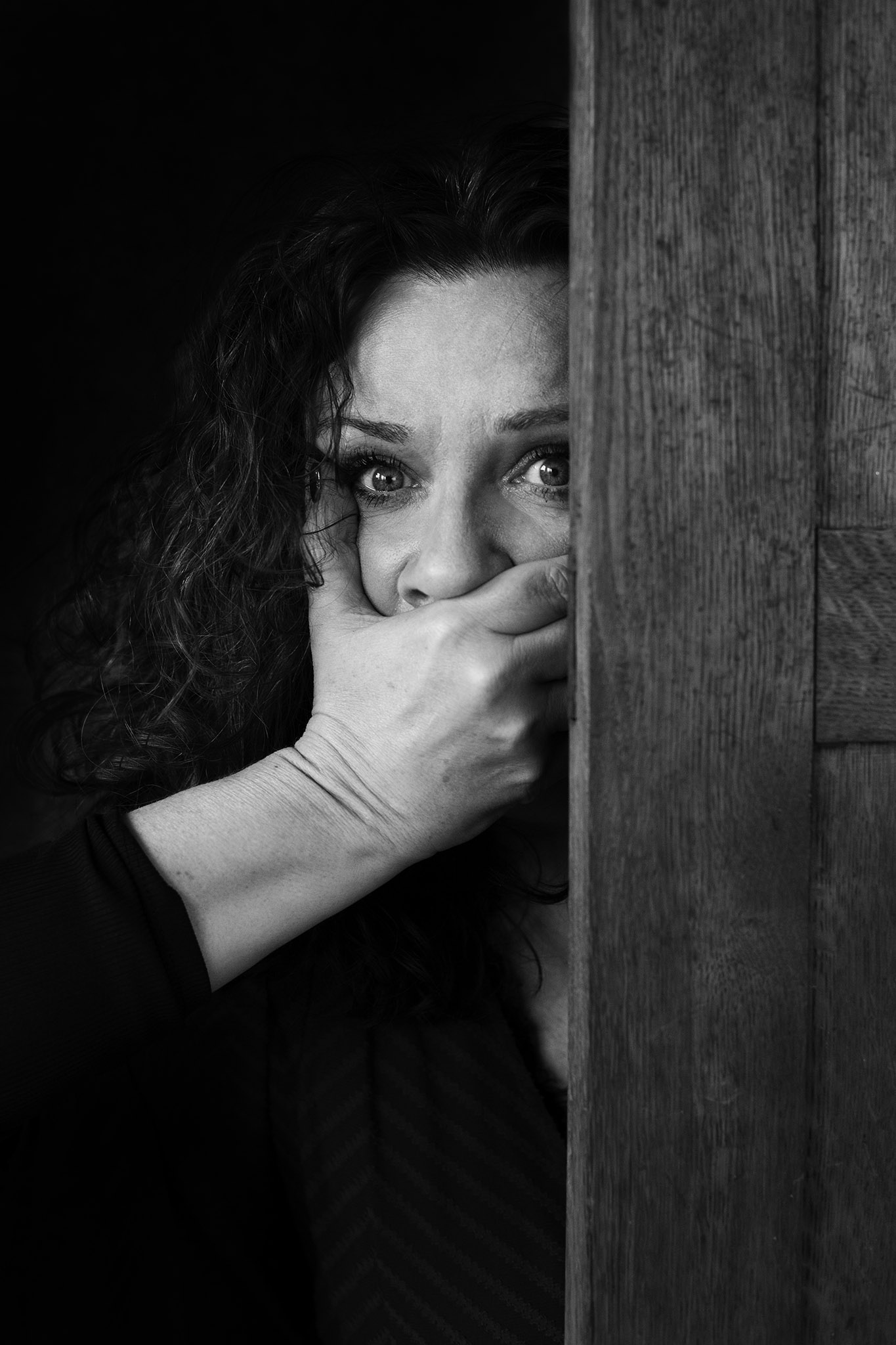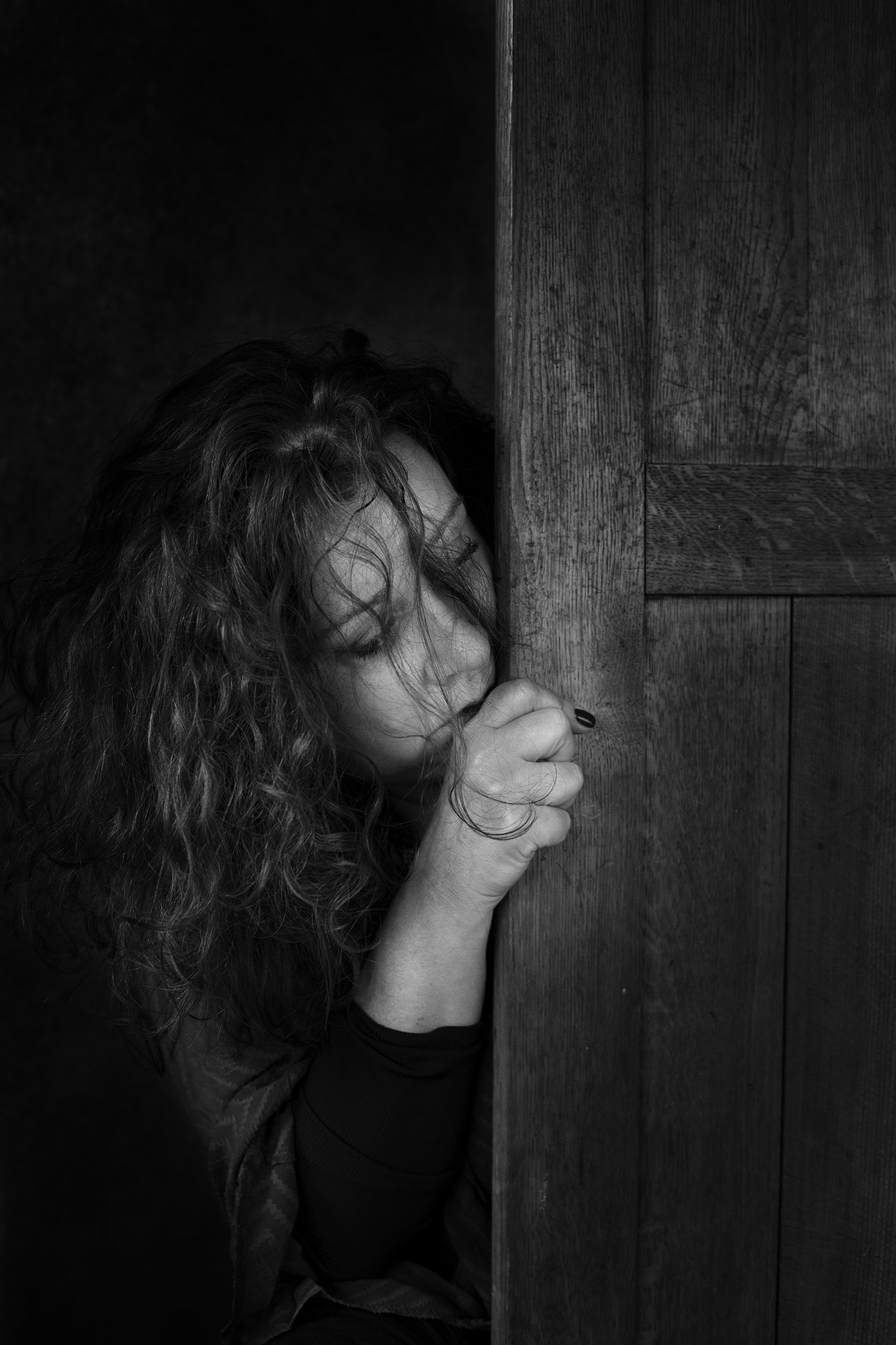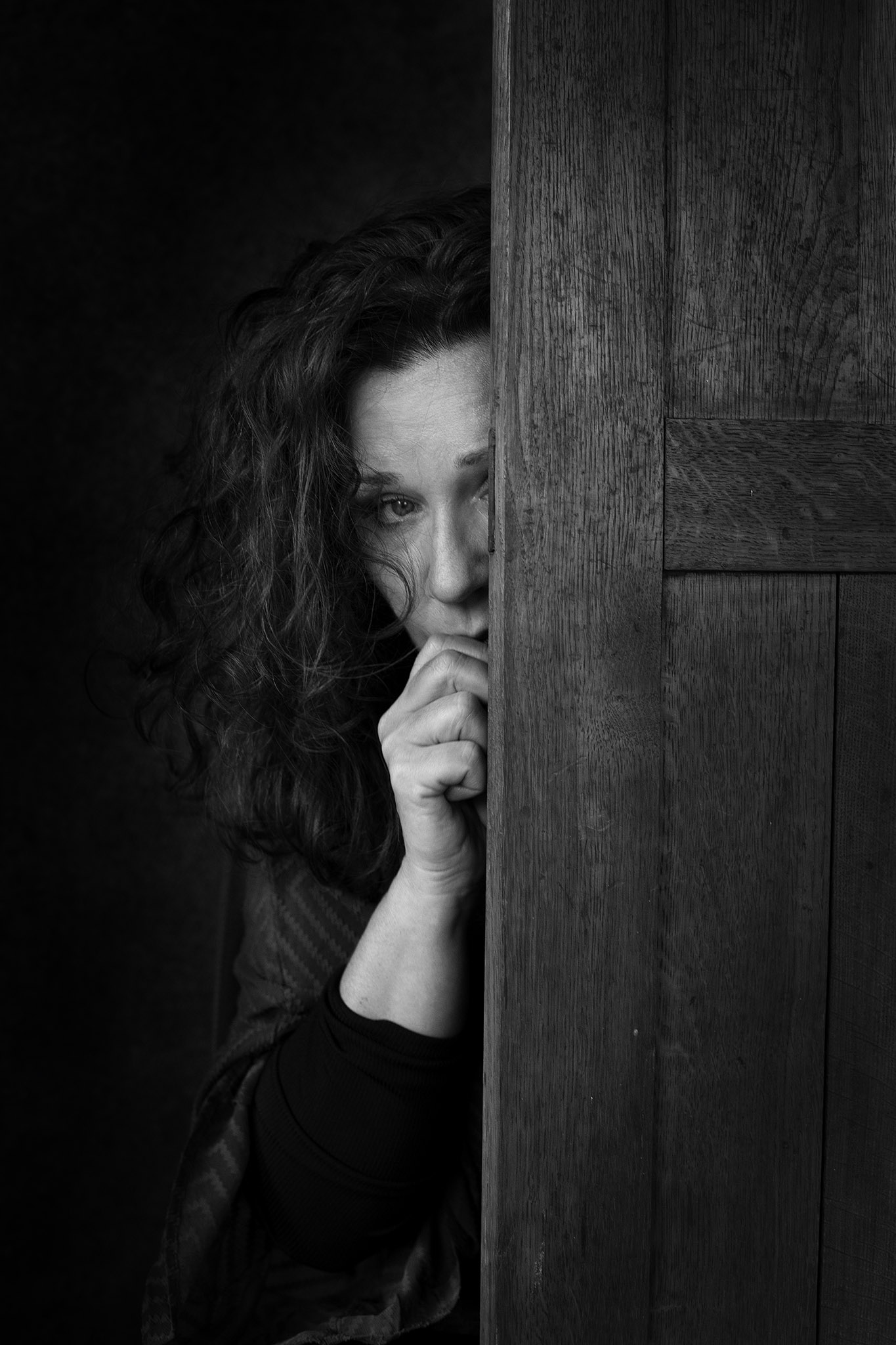 Za drzwiami – na szczęście tylko pozuje – aktorka Beata Schimscheiner